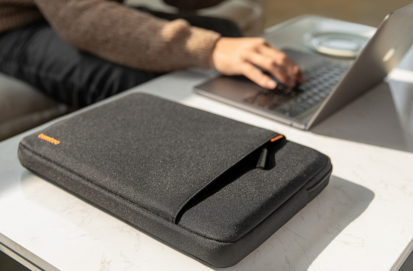 “The exterior of tomtoc laptop sleeve is water-resistant while the cushioned interior is fluffy and soft.”